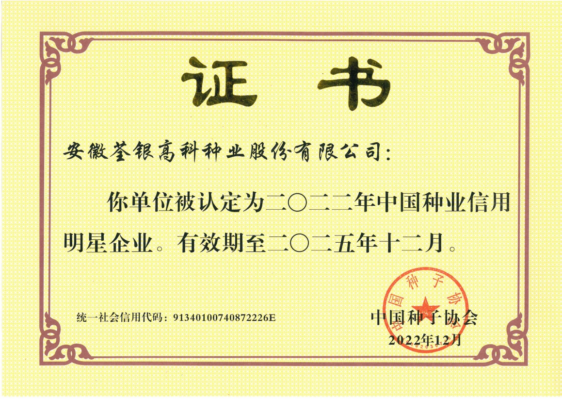 安徽荃銀高科種業(yè)股份有限公司是一家“以種業(yè)為核心、農(nóng)業(yè)服務為延伸、探索和創(chuàng)新農(nóng)業(yè)多元化發(fā)展”的現(xiàn)代高科技種業(yè)上市公司,證券代碼:300087。公司注冊資金9.47億元,系“中國種業(yè)領軍企業(yè)、農(nóng)業(yè)產(chǎn)業(yè)化國家重點龍頭企業(yè)、國家高新技術企業(yè)、農(nóng)業(yè)部首批農(nóng)作物種子育繁推一體化企業(yè)、中國種業(yè)信用明星企業(yè)"。在國內(nèi)控股子公司20多家,在國外設立分支機構4家,良種銷售至全國20多個省(市、區(qū)),出口覆蓋20多個國家與地區(qū),種業(yè)綜合實力、雜交水稻研發(fā)、推廣及海外業(yè)務規(guī)模均居全國種子企業(yè)前2位。